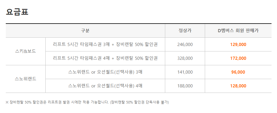 비발디파크 리프트권 08:30 ~ 익일 03:00 (정설시간 16:30~18:30 (2H)