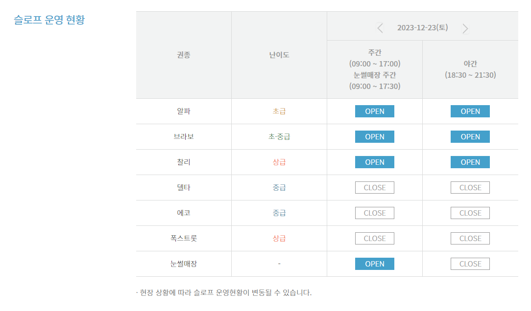 스노위랜드 일~목 10:00 ~ 18:00, 금~토 10:00 ~ 20:-00 *금~토 야간운영일정은 변동 될 수 있습니다.