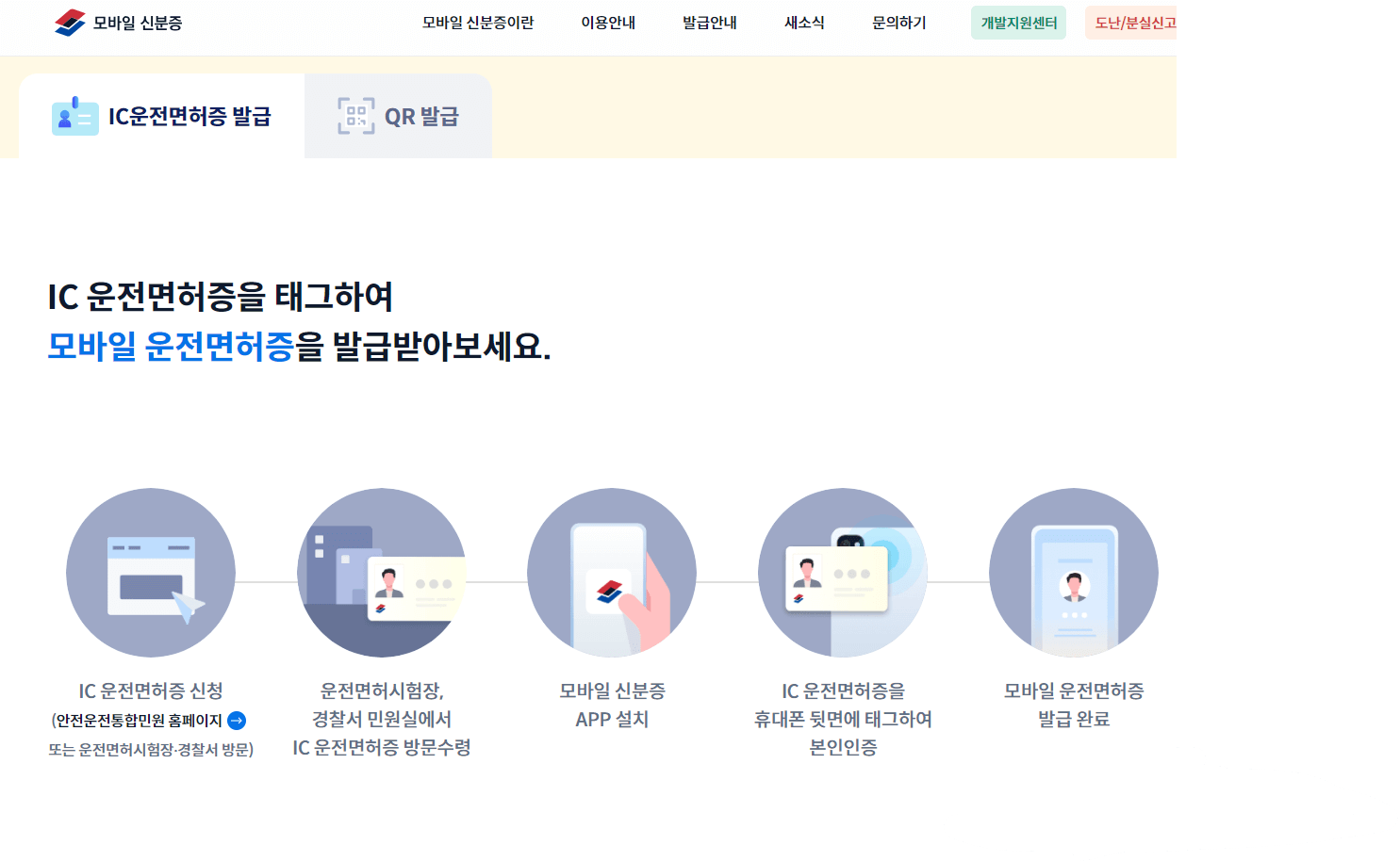 IC 운전면허증으로 교체하고 편리하게 발급 받아보세요. IC 운전면허증은 기존 면허증과 동일하게 사용할 수 있으며 스마트폰을 교체하여도 직접 모바일 운전면허증을 발급 받을 수 있어 편리합